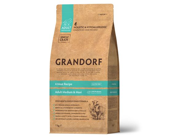 GRANDORF четыре вида мяса для собак средних и крупных пород 1 кг,6018/1119