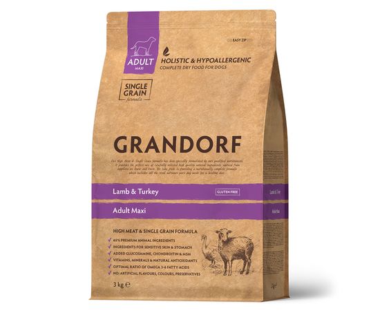 Корм GRANDORF для взрослых собак крупных пород, ягненок и индейка, 3 кг