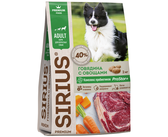 SIRIUS — сухой корм премиум класса для полноценного ежедневного рациона взрослых собак. Высокое содержание мясных ингредиентов обеспечивает оптимальный уровень белка и укрепляет мышцы. Баланс витаминов и комплекса пробиотиков 4-го поколения PROSTOR+ нормализует пищеварение и укрепляет иммунитет. Омега 3 и Омега 6 способствуют поддержанию здоровья сердца, мозга, нервной системы, здоровья кожи и красоты шерсти.