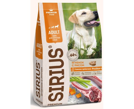 Сухой корм SIRIUS для взрослых собак, ягненок и рис, 15 кг