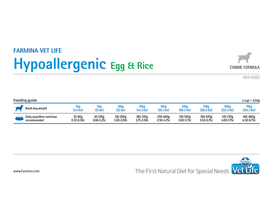 Farmina Vet Life Dog Hypoallergenic EGG для собак при пищевой аллергии Яйцо и рис 2 кг