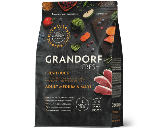 GRANDORF Fresh свежее мясо утки с бататом для собак средних и крупных пород, 1кг