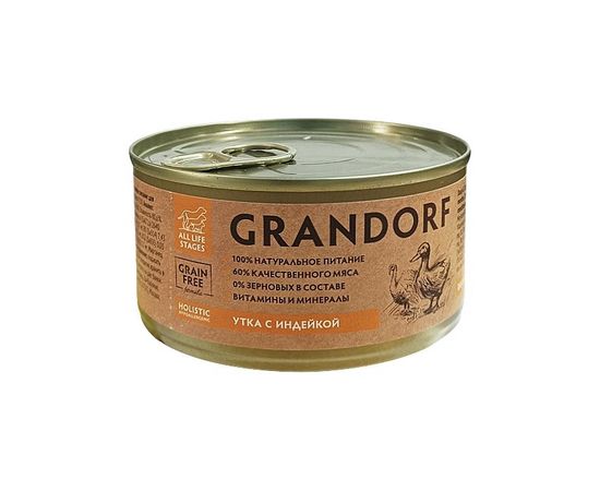 Конерва GRANDORF для собак, утка и индейка, 185 г