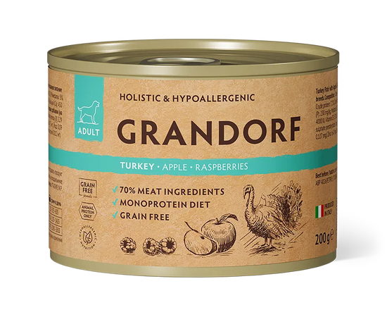 GRANDORF для собак паштет из индейки с яблоком и малиной 200г