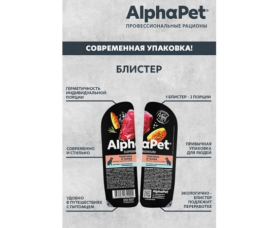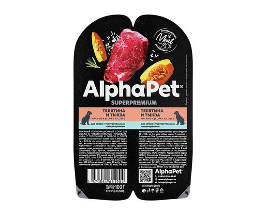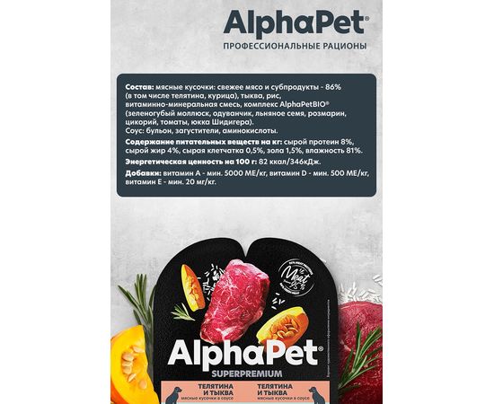 AlphaPet Superpremium для собак телятина и тыква мясные кусочки в соусе, 100г,651904