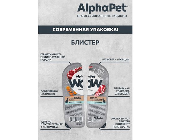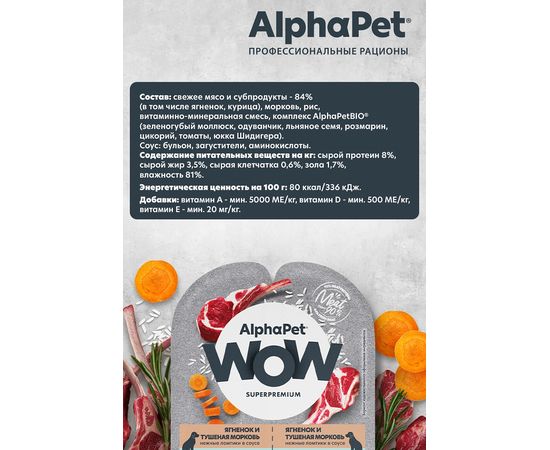 AlphaPet WOW для собак ягненок и тушеная морковь нежные ломтики в соусе, 100г, 651812