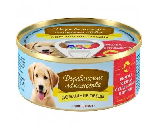 ДЕРЕВЕНСКИЕ ЛАКОМСТВА консервы для щенков вырезка говяжья с сердечками и цукини 100 г