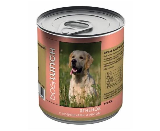 Дог Ланч консервы д/собак Ягненок с потрошками и рисом в желе 750 г,61226