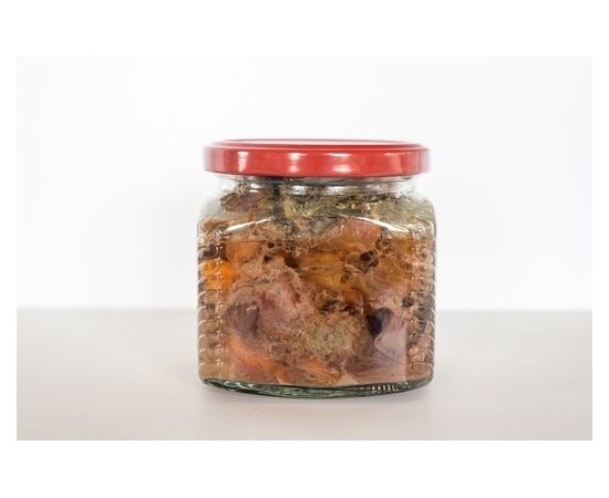 Состав: щека говяжья ,рубец говяжий, серце говяжье, морковь.