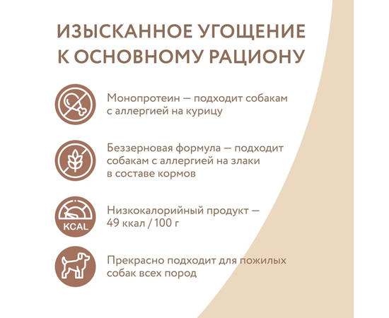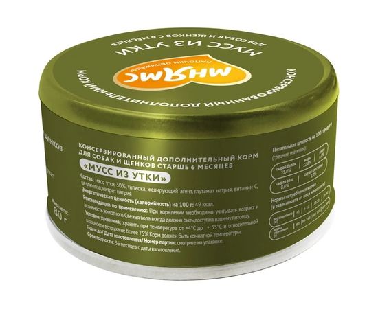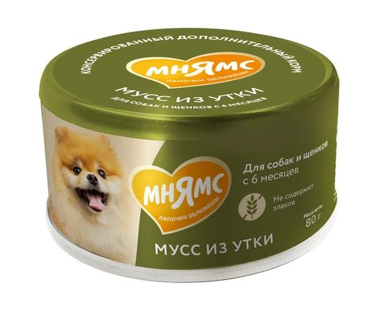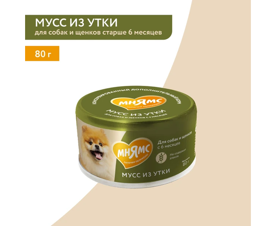 Прекрасно подходит пожилым собакам, а также питомцам с аллергией на курицу или злаки в составе кормов. «Мнямс» консервированный дополнительный корм для собак и щенков старше 6 месяцев «мусс» из утки гарантирует, что ваш питомец получит только качественный и вкусный продукт, который прекрасно разнообразит рацион любимца, поддержит его здоровье и жизненную энергию.