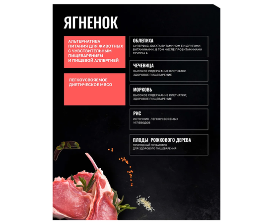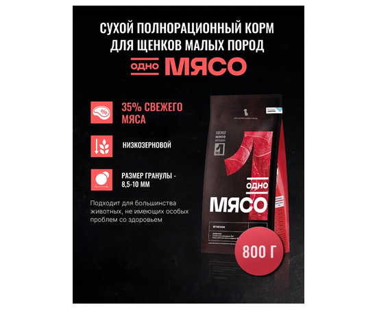 Сухой корм "ОДНО МЯСО" для щенков малых пород с ягненком 800 гр