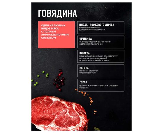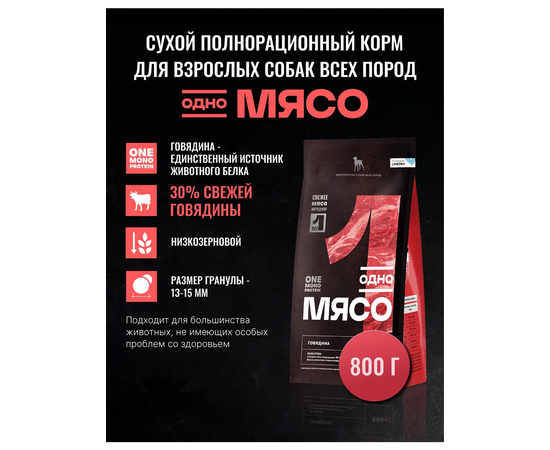 Корм "ОДНО МЯСО" для взрослых собак всех пород с говядиной 800г