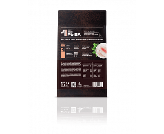 Корм ОДНО МЯСО для взрослых собак малых пород с белой рыбой 2 кг