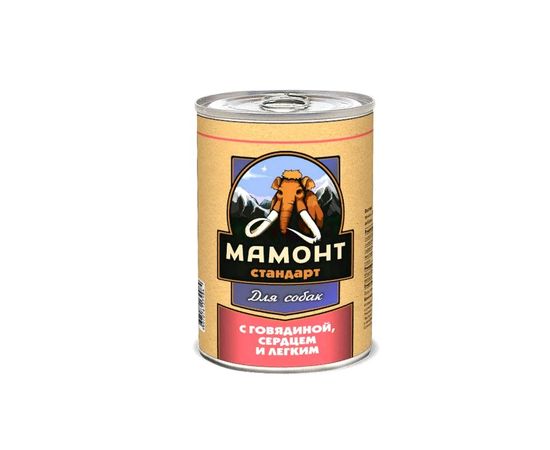 Корм МАМОНТ Стандарт Говядина, сердце и лёгкое влажный для собак ж/б 0,97 кг,ЦБ-00025740