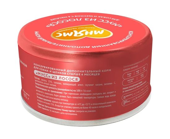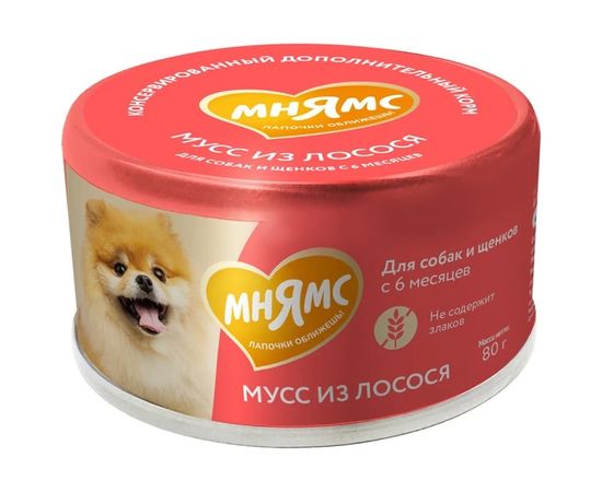 Прекрасно подходит пожилым собакам, а также питомцам с чувствительной кожей и аллергией на курицу или злаки в составе кормов. «Мнямс» консервированный дополнительный корм для собак и щенков старше 6 месяцев «мусс» из лосося гарантирует, что ваш питомец получит только качественный и вкусный продукт, который прекрасно разнообразит рацион любимца, поддержит его здоровье и жизненную энергию.