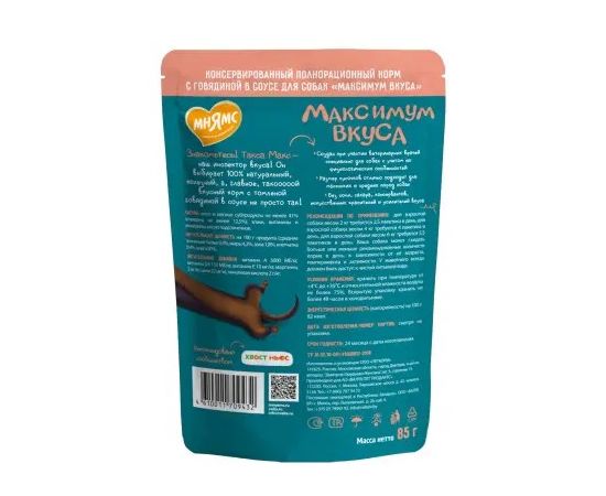 Мнямс пауч томленая говядина в соусе для собак "Максимум вкуса" 85г,709432