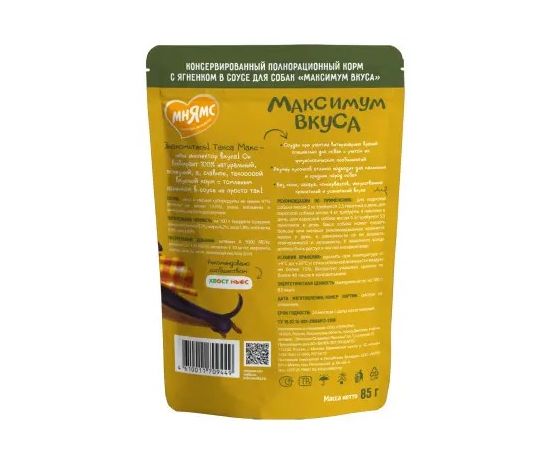 Мнямс пауч томленый ягненок в соусе для собак "Максимум вкуса" 85г, 709449