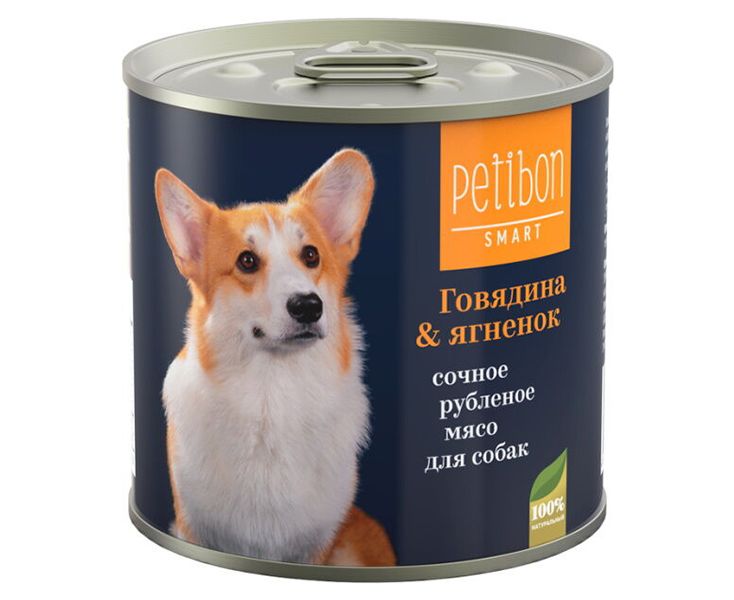 Консервы для собак Petibon Smart приготовлены из двух видов сочного мяса по фирменной рецептуре в баночках весом 100, 240 или 410 грамм.