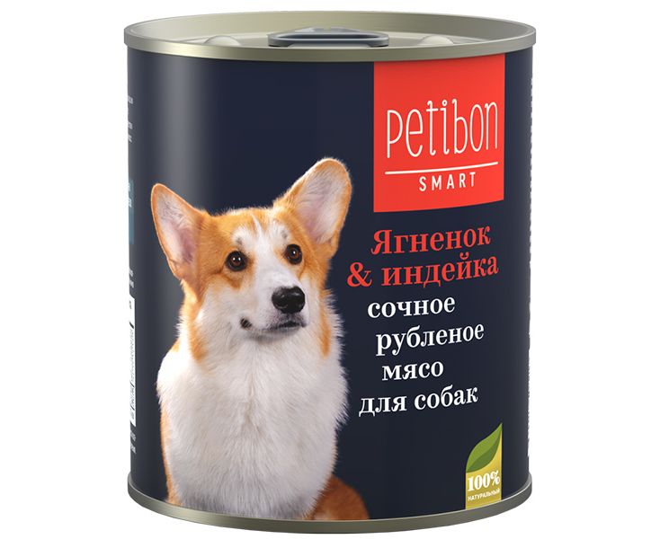 Консервы для собак Petibon Smart приготовлены из двух видов сочного мяса по фирменной рецептуре в баночках весом 100, 240 или 410 грамм.