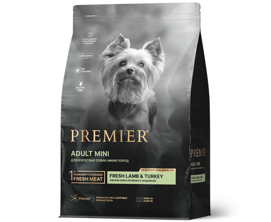 Premier Dog Lamb & Turkey Adult Mini корм с мясом ягненка и индейкой для собак мелких пород, 8кг