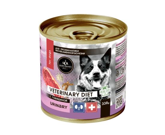 Полнорационный консервированный корм для непродуктивных животных SECRET Premium Urinary с говядиной Консервы для собак, рекомендуемый для профилактики мочекаменной болезни.