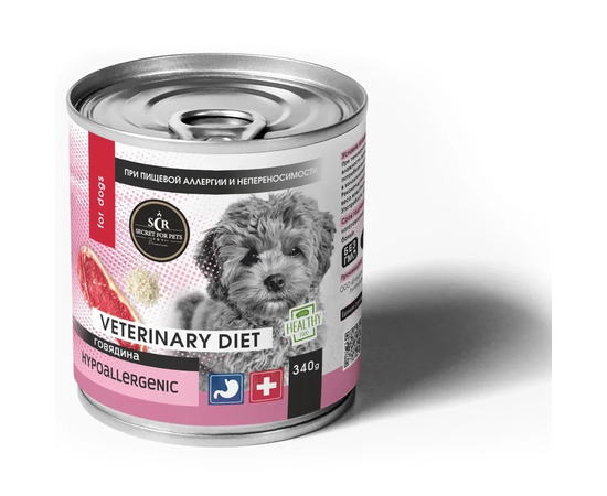 Секрет Премиум Hypoallergenic консервы лечебные для собак с говядиной, 340г