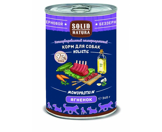 Solid Natura Holistic Ягнёнок влажный корм для собак жестяная банка 340 гр