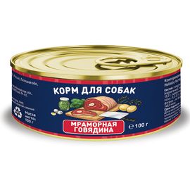 Говядина 30%, субпродукты говяжьи: печень 20%, рубец 10%, сердце 10%, желирующая добавка, растительное масло, соль, вода.