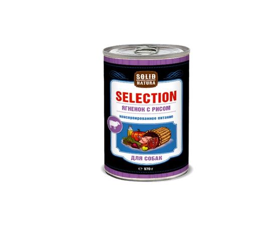 Solid Natura Selection с ягнёнком и рисом - консервированное влажное полнорационное питание для собак. Не содержит сои, ароматизаторов, ГМО. Одновременное применение данных качеств создаёт синергетический эффект. Изготовлено в России из лучших сортов отечественного мяса и птицы