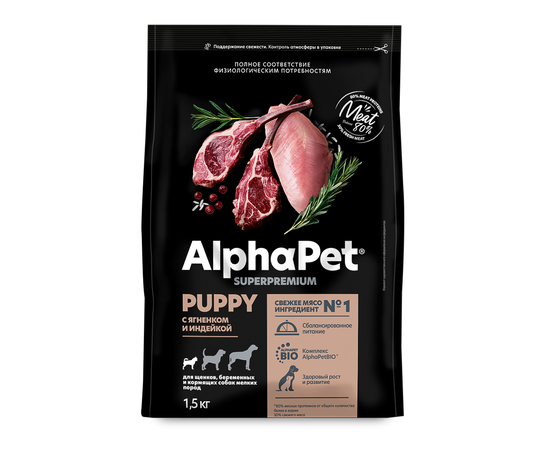 AlphaPet Superpremium корм для щенков мелких пород с ягненком и индейкой, 1.5кг