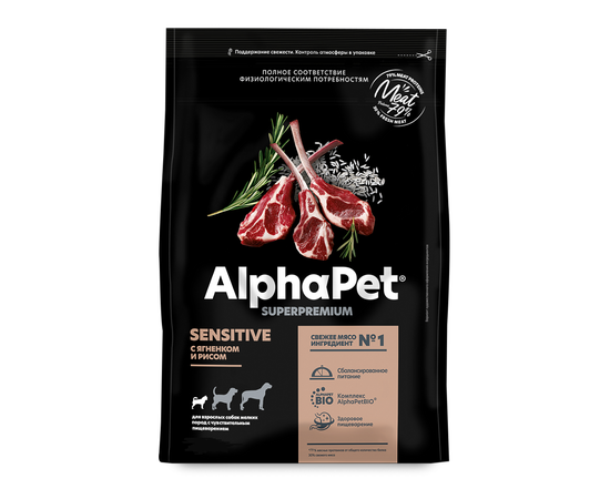 Полнорационный сухой корм с натуральным мясом ягнёнка и добавлением риса. Разработан под брендом AlphaPet Superpremium для взрослых собак мелких пород с чувствительным пищеварением. Сухой корм для собак содержит в составе 80% мясного белка. Специальная технология обработки компонентов позволила сохранить вкусовые и питательные свойства натурального свежего мяса. Корм для собак мелких пород весом не больше 10 кг.