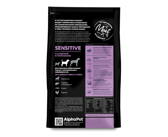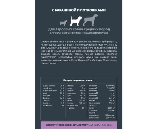 AlphaPet Superpremium корм для собак средних пород с бараниной и потрошками, 2кг, 651430