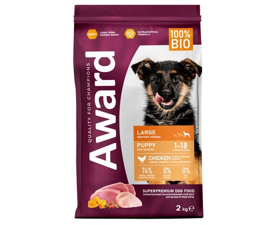 Сухой корм AWARD для щенков от 1 месяца крупных пород, с курицей, тыквой и шиповником, 2кг