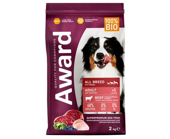 Сухой корм AWARD для взрослых собак всех пород, с говядиной, брокколи и черникой, 2кг