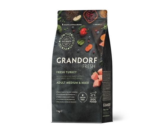GRANDORF Fresh свежее мясо индейки с бататом для собак средних и крупных пород, 1кг, 52888