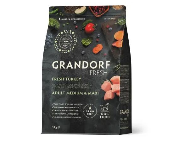 GRANDORF Fresh свежее мясо индейки с бататом для собак средних и крупных пород, 3кг
