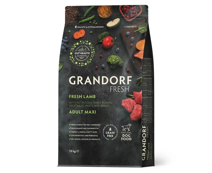 GRANDORF Fresh свежее мясо ягненка с бататом для собак крупных пород, 10кг, 52987