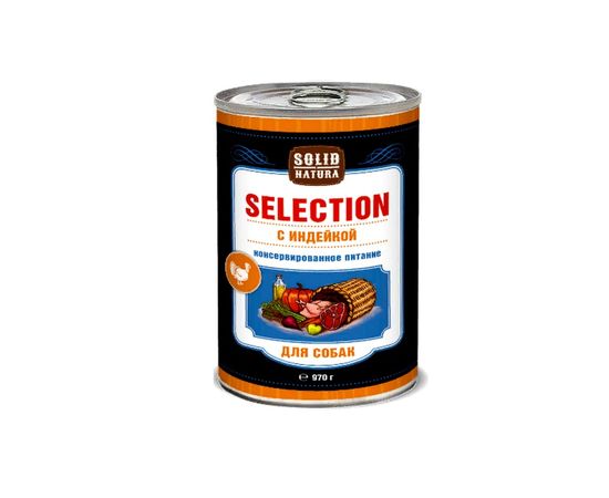 Solid Natura Selection с индейкой - консервированное влажное полнорационное питание для собак. Не содержит сои, ароматизаторов, ГМО. Одновременное применение данных качеств создаёт синергетический эффект. Изготовлено в России из лучших сортов отечественного мяса и птицы.