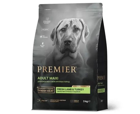 Сухой корм Premier Dog Lamb & Turkey Adult Maxi для собак крупных пород, с мясом ягненка и индейкой , 3кг