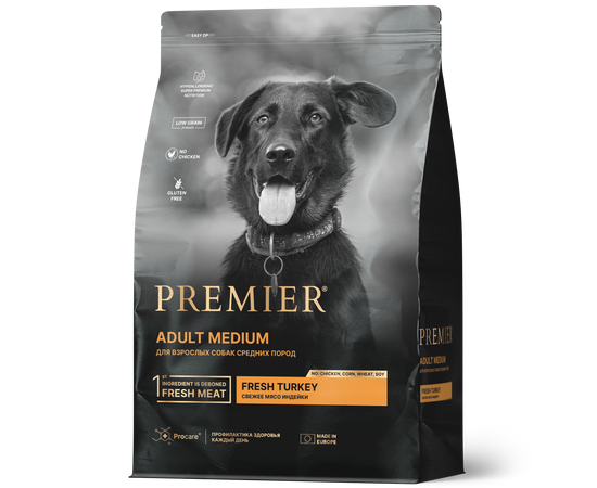 Сухой корм Premier Dog Lamb & Turkey Adult Medium для собак средних пород, с мясом индейки, 1кг