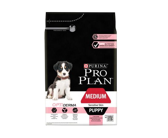 PRO PLAN PUPPY MEDIUM OPTIDERMA сухой корм для щенков средних пород с лососем 1,5 кг, 12272384