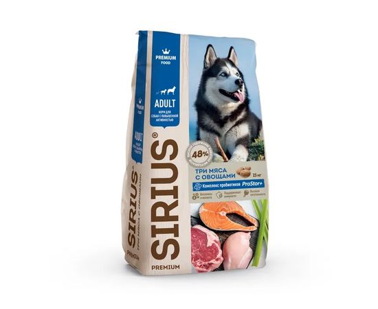 Сухой корм SIRIUS для собак с повышенной активностью, 3 вида мяса с овощами 15 кг