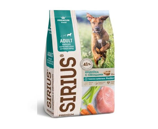 Сухой корм SIRIUS для взрослых собак крупных пород, индейка с овощами, 2 кг