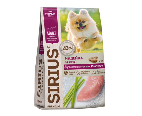 Сухой корм SIRIUS для взрослых собак малых пород, индейка, 2 кг