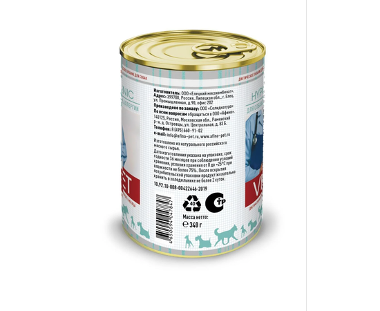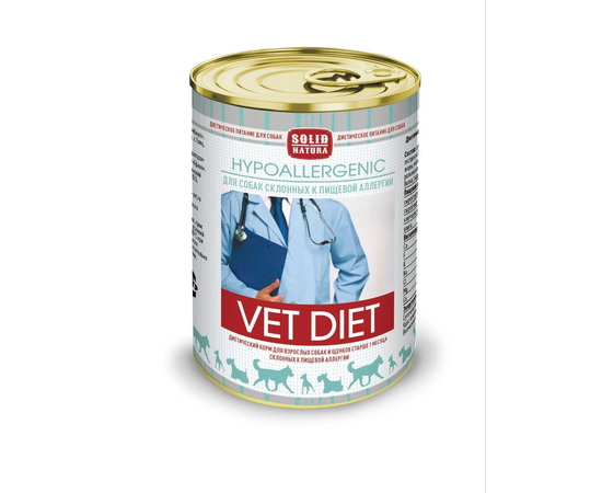 Solid Natura VET Hypoallergenic. Влажный диетический корм для взрослых собак всех пород склонных к пищевым аллергиям.
