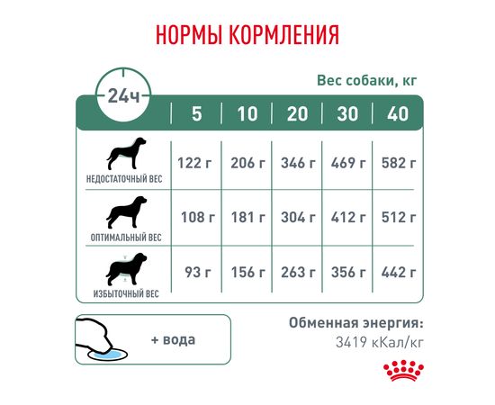 Вес собаки Недостаточный вес Нормальный вес Избыточный вес