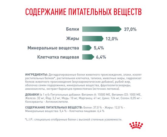 * LIP (Low Indigestible Protein): высококачественные белки с максимальной степенью усвояемости.