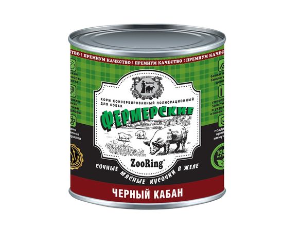Корм ZooRing для собак, кусочки мяса в желе черный кабан, 850 гр