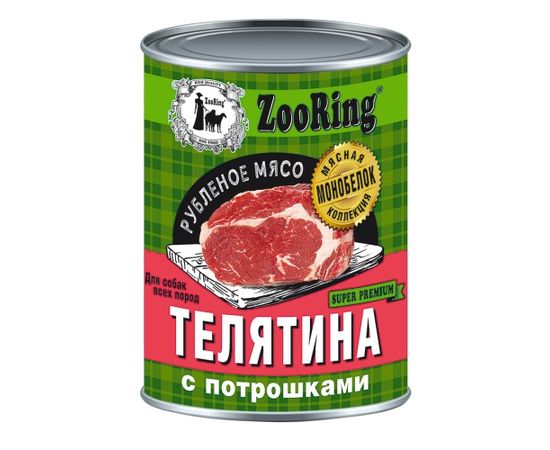 Корм ZooRing для собак, телятина с потрошками, 338 гр