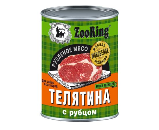 Корм ZooRing для собак, телятина с рубцом, 338 гр